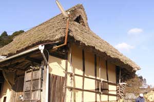 八塔寺は、神亀5(728)年に聖武天皇の勅願で弓削道鏡により建立創建された天台宗の寺です。備前のあたりでは最も高い八塔寺山(標高539m)南麓に位置し、これは、かつての備前・美作・播磨の三国の境にあたります。ここのわずかな平地には、当時十三重塔七堂伽藍完備し七十二僧坊を誇り、その様子が「西の高野山」とも称されて、山上(山岳)仏教の道場として栄えていたそうです。しかし中世に火災にあい次第に廃れましたが、元暦(1184)元年、源頼朝の誓願により梶原景時を奉行として、出張十三重の塔、七堂伽藍等が再建され復興を来しました。元弘建武(1334頃)まで鎌倉将軍家代々の祈願所として栄えましたが、その後のたびたびの戦火や寺領を巡っての真言宗との勢力争いが続き、その様子は「兵火に罹ること三回、一山残らず焼失」と伝えられています。(現寺は天保五年(1835)に再建されたものといわれている)。文政11(1828)年に岡山藩が調停に入り、両宗で分割することになりましたが、かつての賑わいを取戻すまでには至らなかったようです。現在では十数棟の茅葺きの家屋が今も人の住む民家として、田園の広がる平地に沿って残っています。これは全国的にも数少ない貴重な茅葺きの群落のひとつといえるのではないでしょうか。
