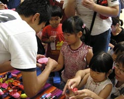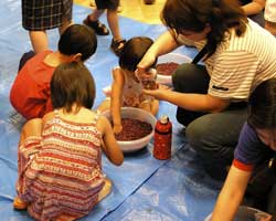 一番大変だったのが告知です。手作りで作成(しかもコピー!)したチラシを持って、倉敷の幼稚園22か所を直接訪れて、配布のお願いにまわりました。けっこう飛び込みっぽかったので心配していたのですが、暖かく受け取ってくださるところも多く、うれしかったです。いきなりお邪魔してびっくりさせてしまったみなさんごめんなさい&感謝しています。またよろしくお願いします♪ また事前告知にご協力下さったリビング新聞社のみなさまありがとうございました。